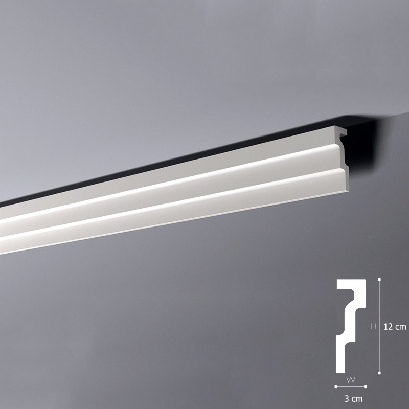 Listwa sufitowa 12cm M1 NMC to bardzo popularny produkt u amatorów niebanalnych aranżacji wnętrz. Oferowana Wysokość 12cm to świetna opcja jeśli chodzi o nowoczesne aranżacje wnętrz. Już teraz wybierz Poliuretanowe listwy, których Szerokość to 3cm.