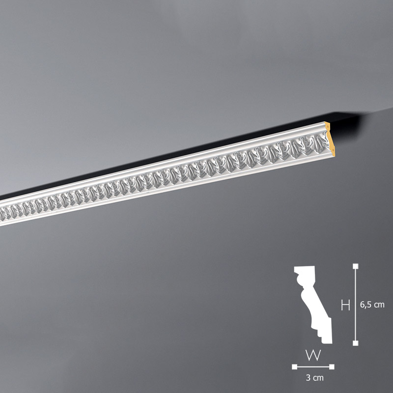 Listwa sufitowa 6,5cm Z8 NMC to bardzo popularny produkt u amatorów niebanalnych aranżacji wnętrz. Oferowana Wysokość 6,5cm to świetna opcja jeśli chodzi o nowoczesne aranżacje wnętrz. Już teraz wybierz Poliuretanowe listwy, których Szerokość to 3cm.